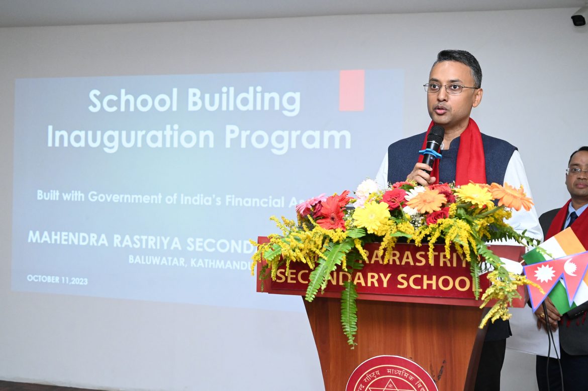 Today, school building of Shree Mahendra Rastriya Secondary School, Baluwater, Kathmandu, built with Government of India’s financial assistance of NRs.19.20 Million under ‘Nepal-India Development Cooperation was formally handed over and inaugurated jointly by Shri Prasanna Shrivastava, Deputy Chief of Mission, Embassy of India, Kathmandu and Mr. Santosh Budathoki, Chief, DCC Kathmandu. The political representatives, social workers, officials of Nepal Government, representatives of the School Management, teachers, parents and students were also present on this occasion.